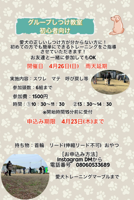 グループしつけ教室(初心者向け)開催のお知らせ